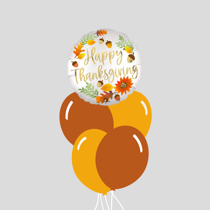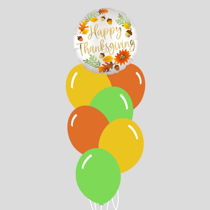 Foil balloon or select latex balloons to make a beautiful bouquet. This classic arrangement will brighten their day on crisp autumn days! This bouquet can be assembled with five or seven balloons: