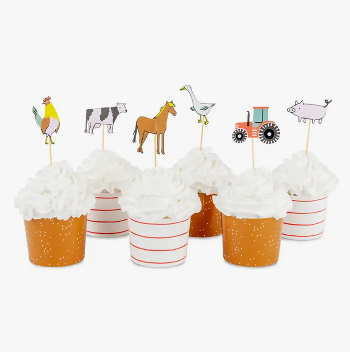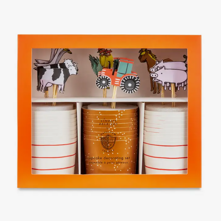 All the farm feelings! Featuring silver and gold foil elements, this cupcake decorating set makes us want to party until the cows come home!