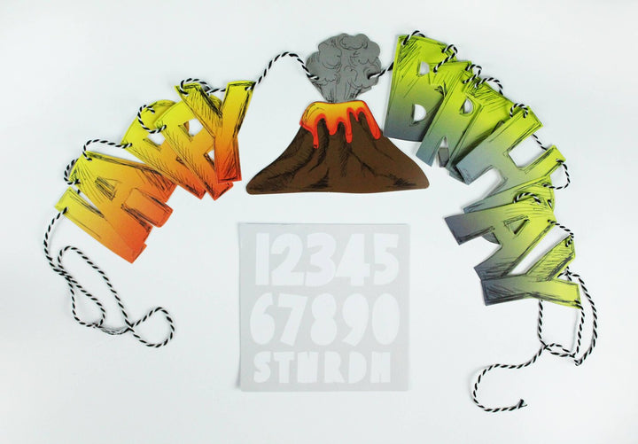 This volcano birthday banner is great for Dinosaur or Volcano party. Letters are drawn to look like it's cut out from a sketchbook.