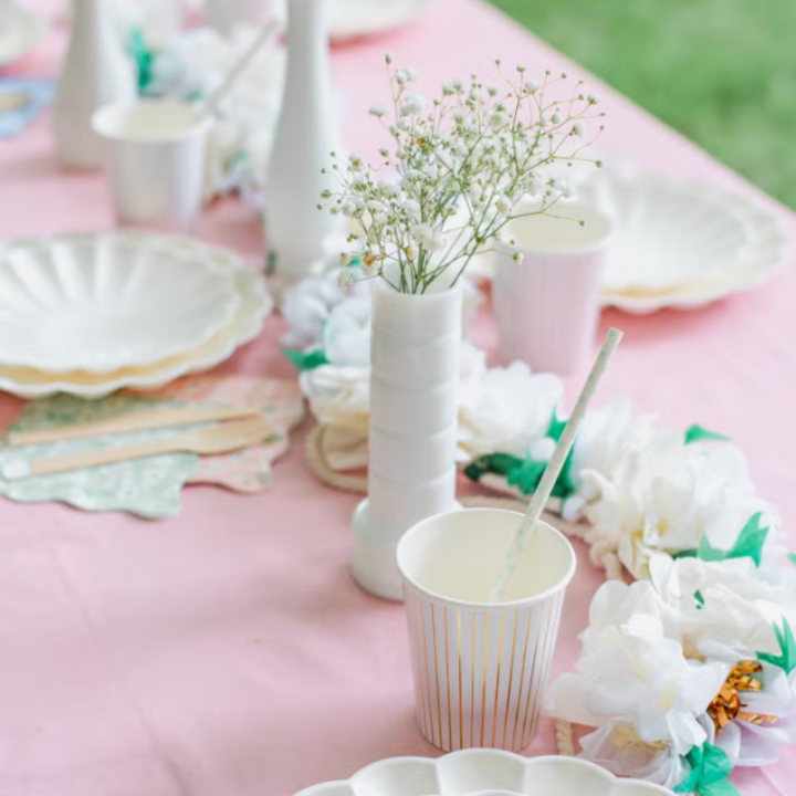 Say no to those icky plastic tablecloths. This beautiful pink paper tablecloth looks just like fabric. It drapes nicely and with 7 trendy colors to choose from you can match it up with any party theme or occasion.