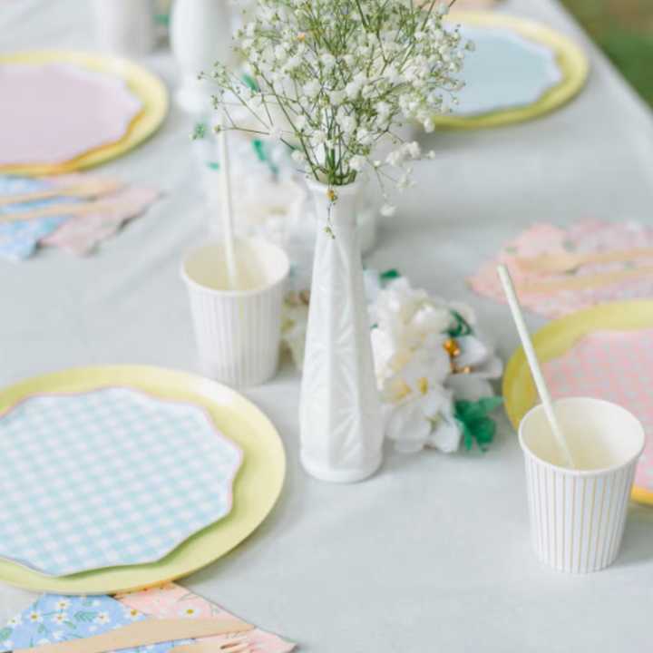 Say no to those icky plastic tablecloths. This beautiful white paper tablecloth looks just like fabric. It drapes nicely and with 7 trendy colors to choose from you can match it up with any party theme or occasion.