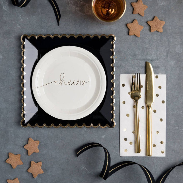 Scallop Black and Gold Large Paper Party Plates