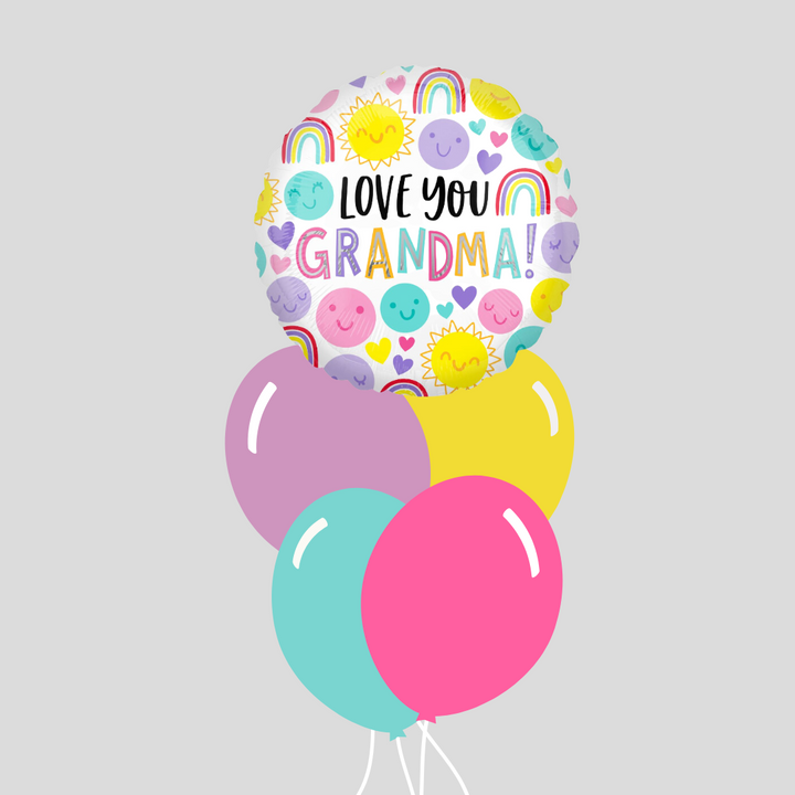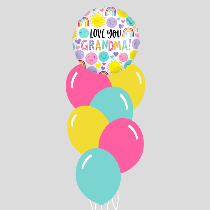 'Love You Grandma' Sunshine and Rainbows Foil Helium Balloon Bouquet