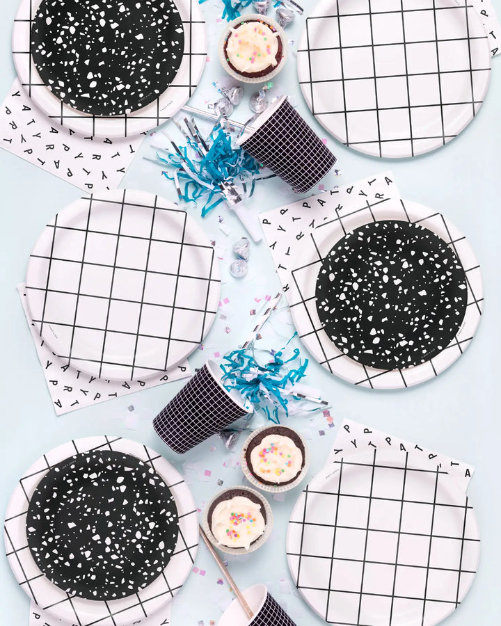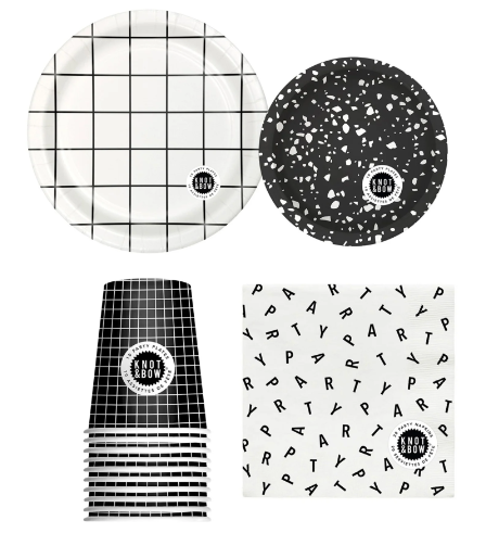 Conceived of in the early days of Knot & Bow and fine-tuned over the course of many years, our new line of multicolored and monochrome party tableware is designed with versatility in mind. This assortment of paper plates, cups, and napkins can be mixed and matched to create table settings that are festive and fresh, never boring.