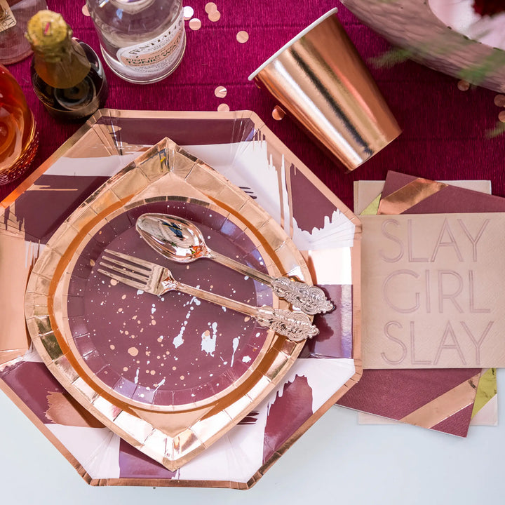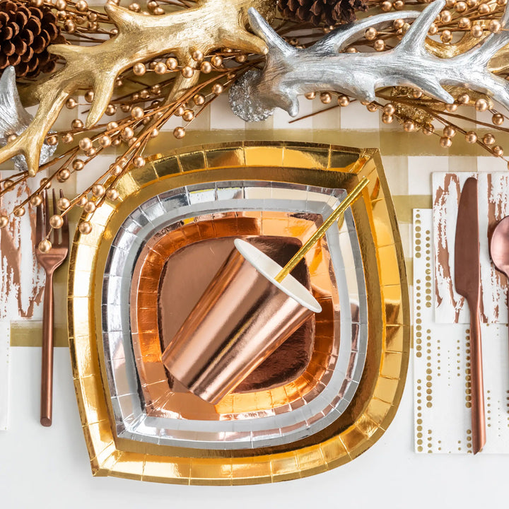 Basics that are anything but, our posh collection is the luxe way to set your table. We’ve got you covered in colors for any occasion with solids with fab gold foiled rims and solid foil designs.