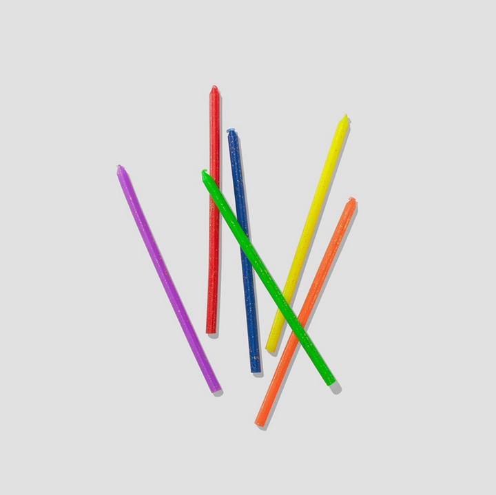 These colorful candles will bring sparkle and ensure your party is lit. Includes 12 candles.