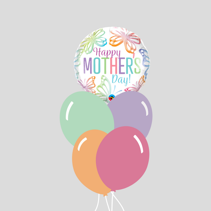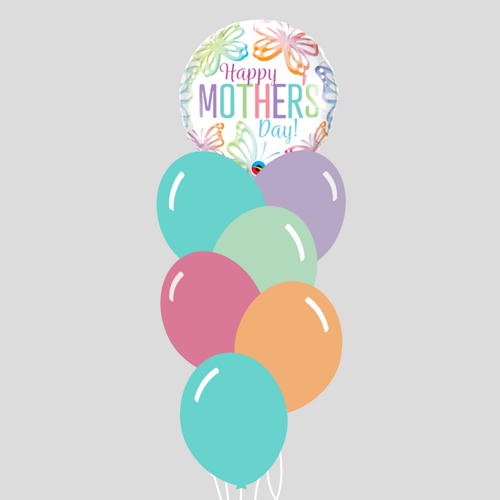 Round Foil Butterflies Helium 'Happy Mother's Day' Balloon Bouquet