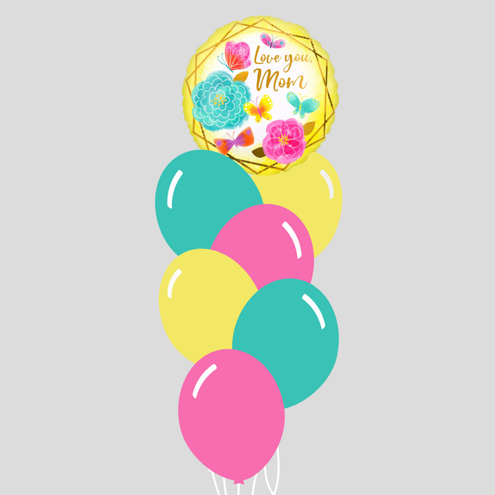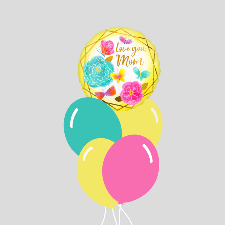 17" Round Gold Trim Foil 'Love You Mom' Helium Bouquet