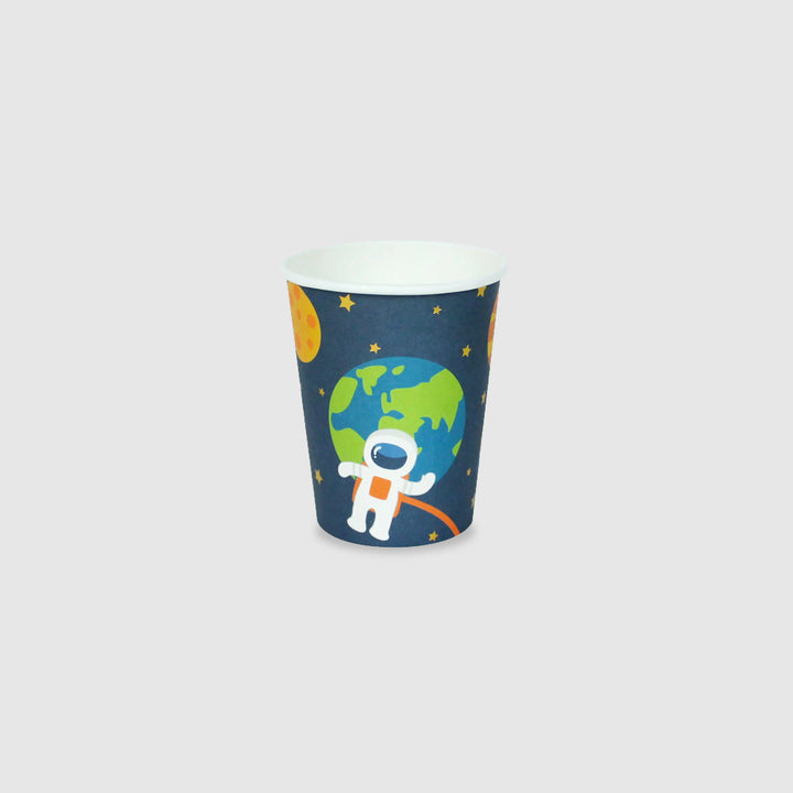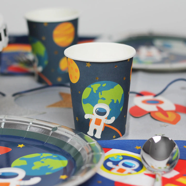 These plates are perfect for outer space themed party. Featuring gold foil stars the cups are illustrated with bright colors.
