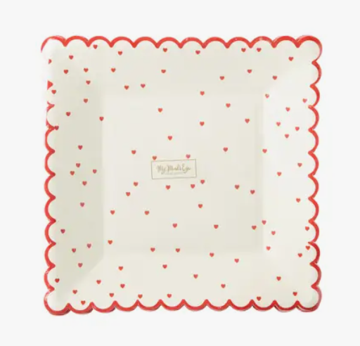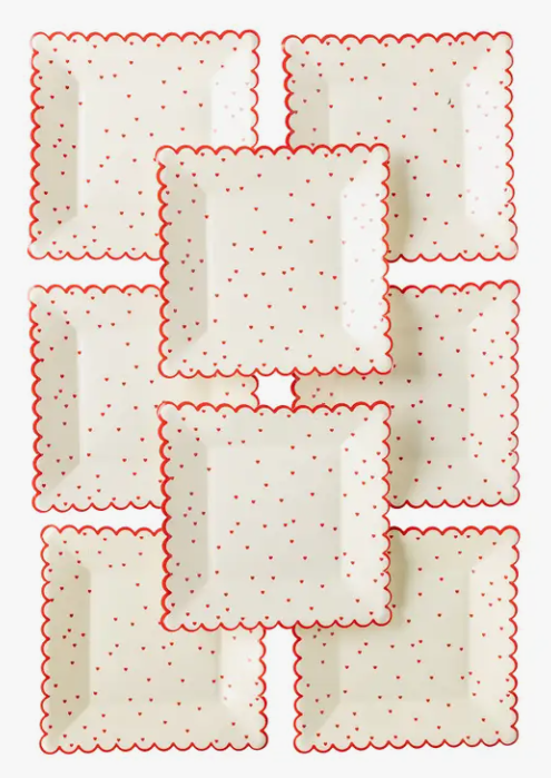 Scatter love and sweet treats this Valentine's Day with these scalloped 8" plates! Featuring a scalloped edge and a pretty scattered heart design these plates are the perfect way to show your guests some love, or pass out sweet Valentine's Day cookies that are sure to spread cheer to your loved ones.