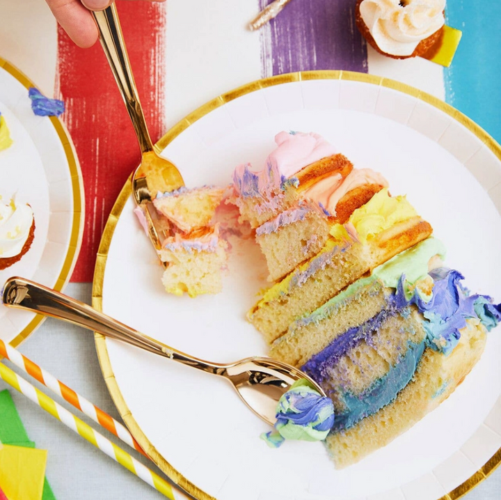 These round plates come in an array of eye-catching colors, making them our go-to for any occasion. This larger size is ideal for serving meals or heavier apps (fruit salad, anyone?). Includes 10 plates.
